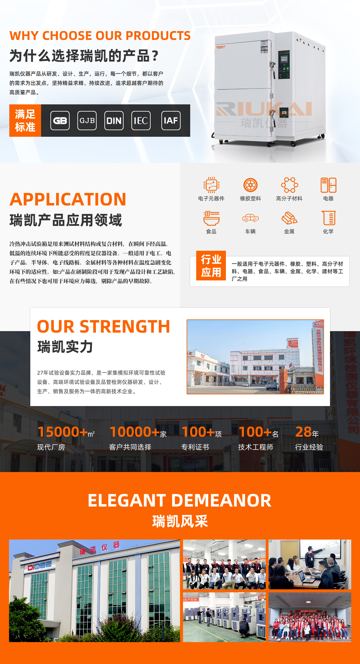 温度冲击试验(Thermal Shock) :以每分钟40度的温变率或客户指定条件在温度急速变化上做极严苛条件之高低温冷热冲击测试。是用来测试材料结构或复合材料,在瞬间下经极高温及极低温的连续环境下所能忍受的程度,借以在短时间内试验其因热胀冷缩所引起的化学变化或物理伤害。