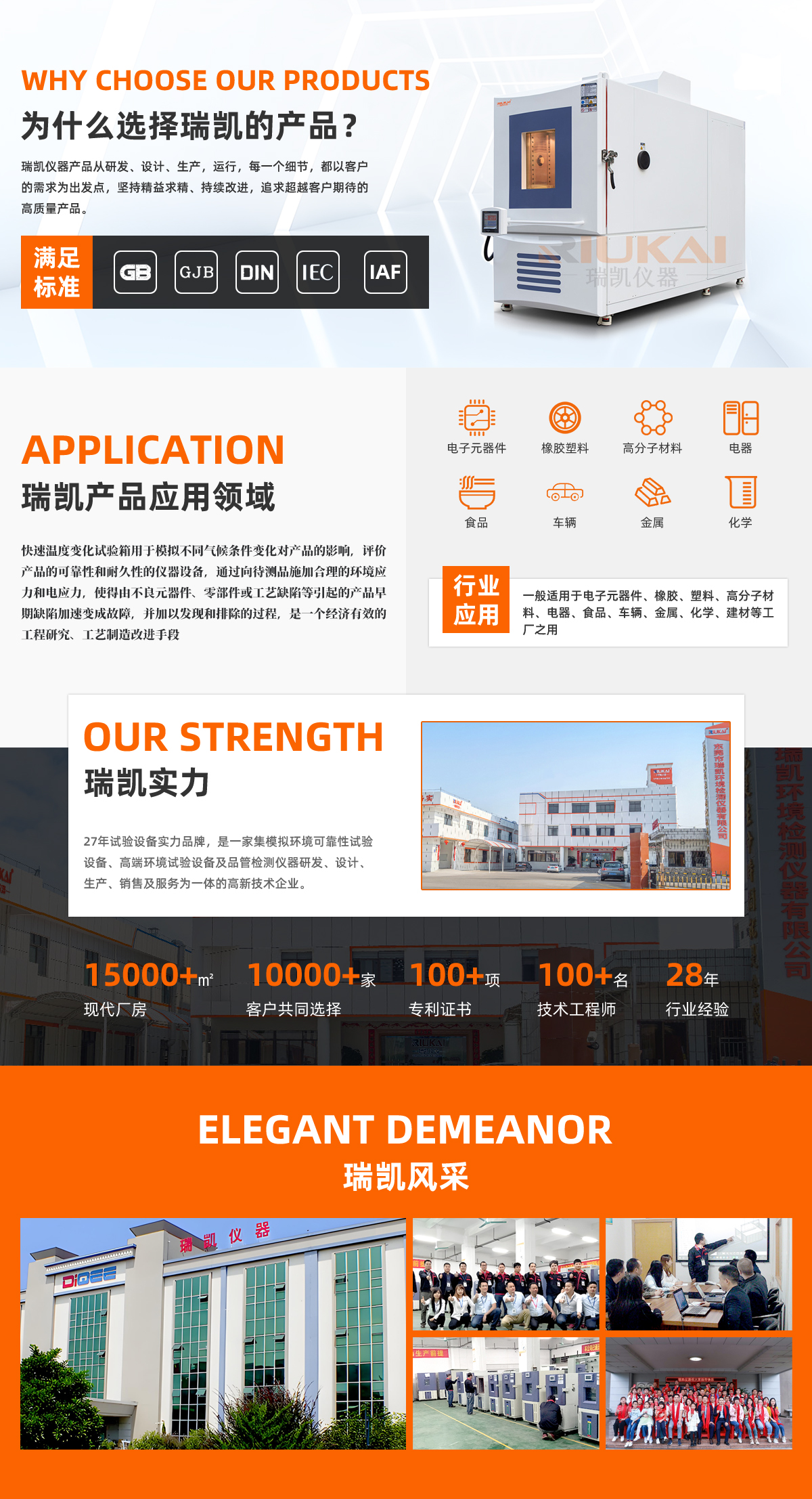 快速温度变化试验箱用于模拟不同气候条件变化对产品的影响,评价产品的可靠性和耐久性的仪器设备,通过向待测品施加合理的环境应力和电应力,使得由不良元器件、零部件或工艺缺陷等引起的产品早期缺陷加速变成故障,并加以发现和排除的过程,是一个经济有效的工程研究、工艺制造改进手段。
